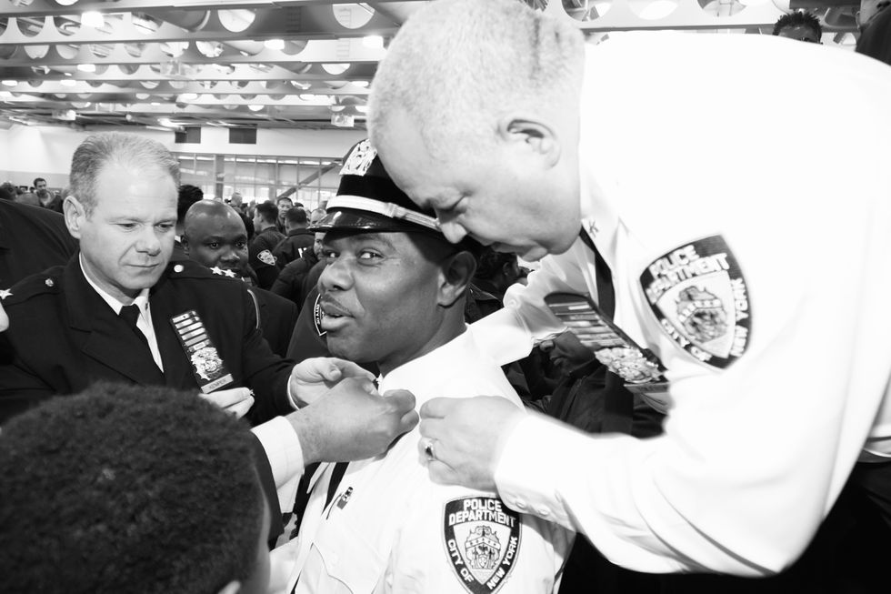 A series of images capturing formal events and ceremonies involving uniformed police officers.